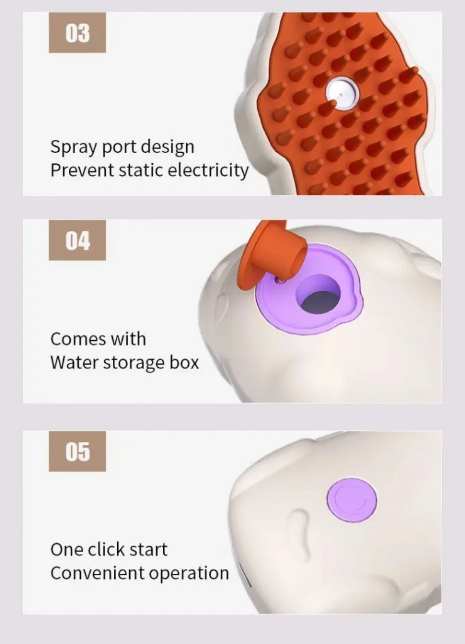 - 3 in 1 Cat Steamy Brush:Hair removing, spray cleansing and massaging. Steaming cat brush may clear grime from hair and pores and skin. Reduce the frequency of bathing. And therapeutic massage to advertise blood circulation.