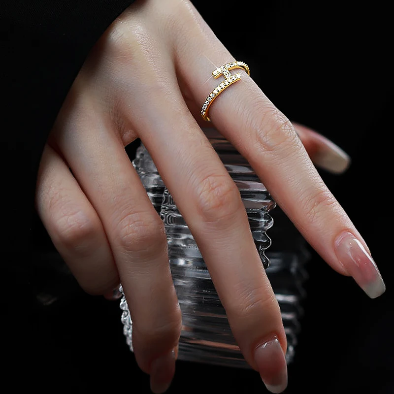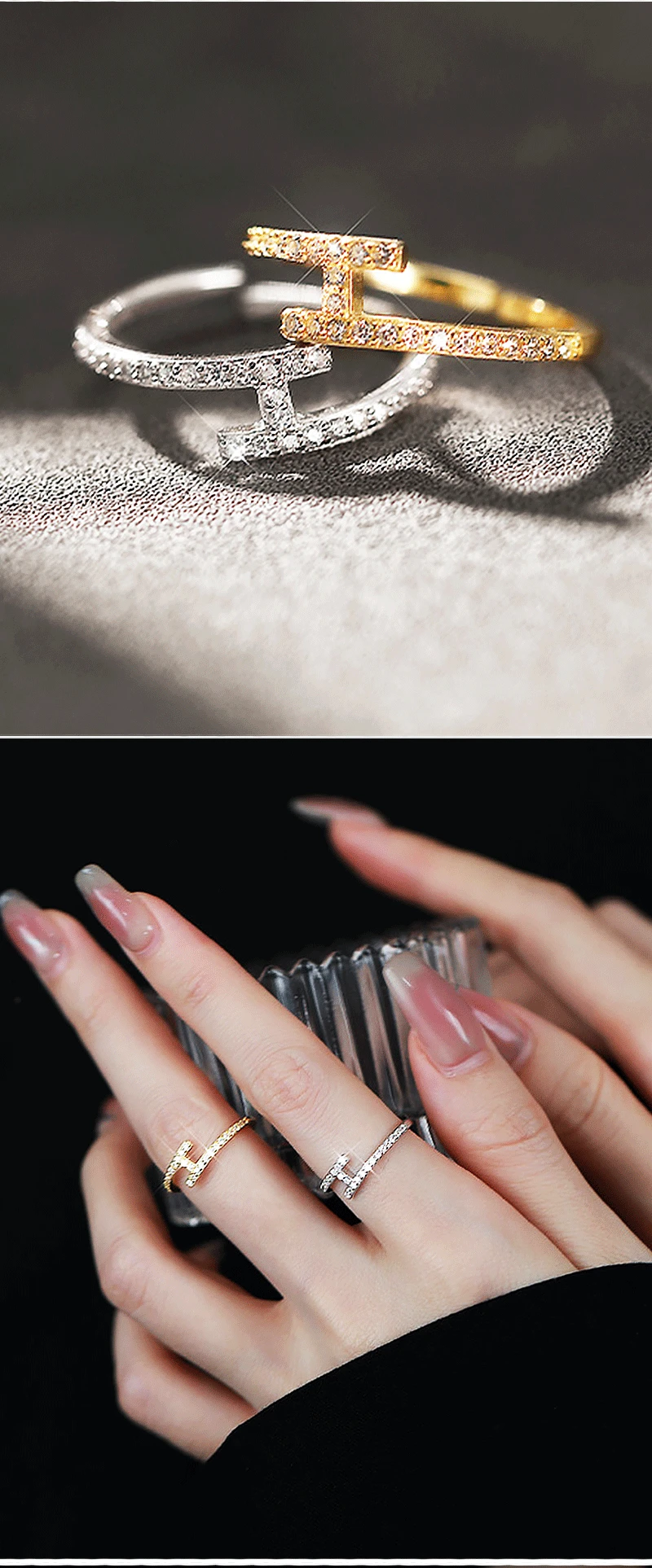 Irregular Hollow Opening H Letter Rings For Women Stainless Steel Gold Color Copper Geometric Ring Fashion Simple Party Jewelry