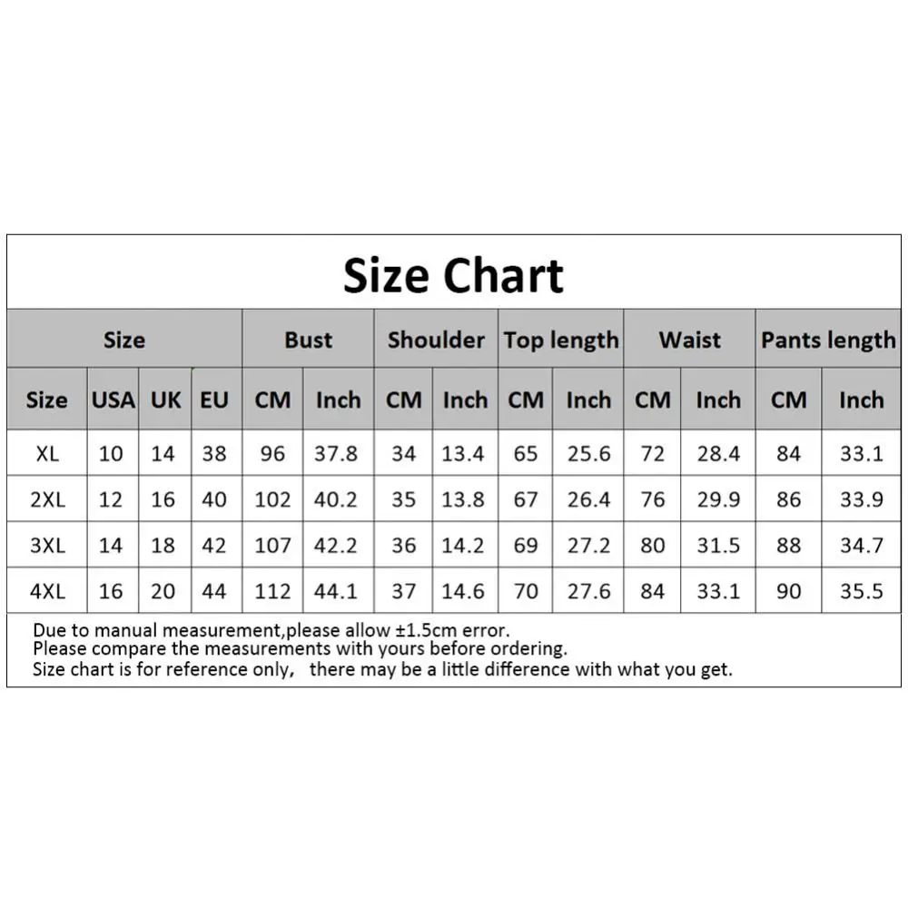 [Our Size 3XL] Bust: 107cm/42.1", Shoulder: 36cm/14.2", Top Length: 69cm/27.2", Sleeve: 80cm/31.5", Pants Length: 92cm/36.2" (Approx.)