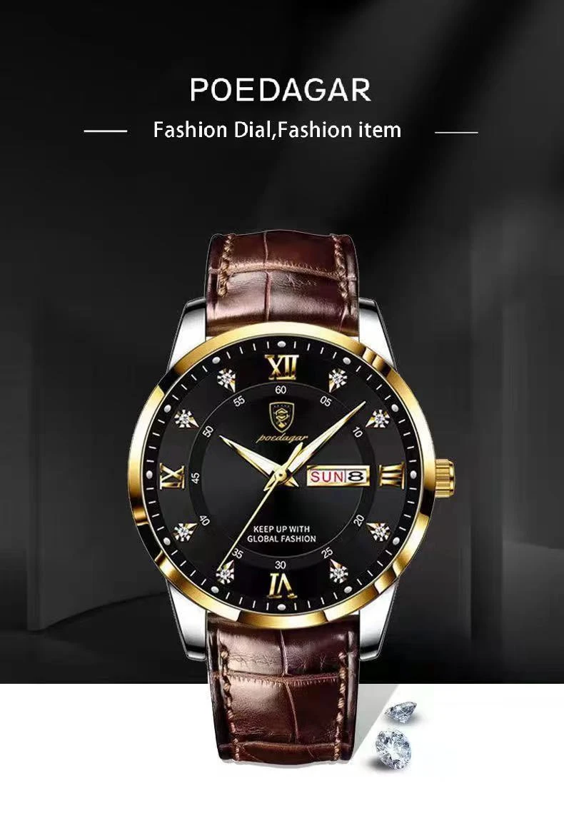 Uncategorized POEDAGAR Men Watch Fashion High Quality Leather Watches Waterproof Luminous Week Date Top Brand Luxury Quartz Man Wristwatch affiliatedstore - April 3, 2024 0 Price: [price_with_discount] POEDAGAR Official Store Package Included:1 x Watch1 x Box1 x Watch wipe1 x Warranty card