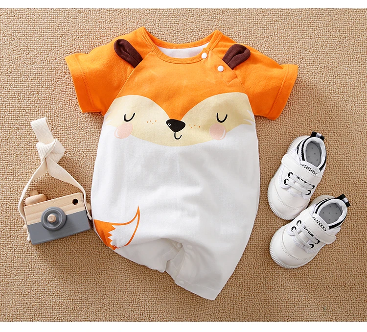 Home Uncategorized 0-18 Baby Jumpsuit Cute Cartoon Fox Print Cotton Casual And Comfortable Soft Summer Round Neck Short Sleeved Newborn Clothes