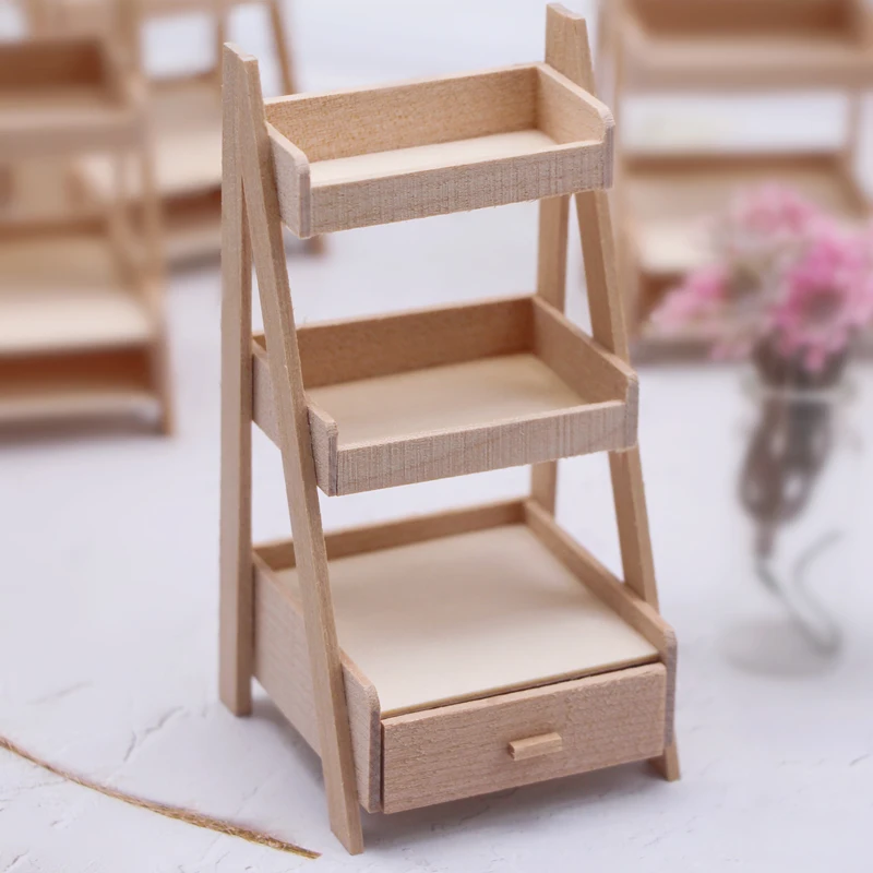 1Pcs Dollhouse Miniature Plant Wooden Shelf Flower Stand Simulation Furniture Fairy Garden Tool Storage Rack Decoration Accessory