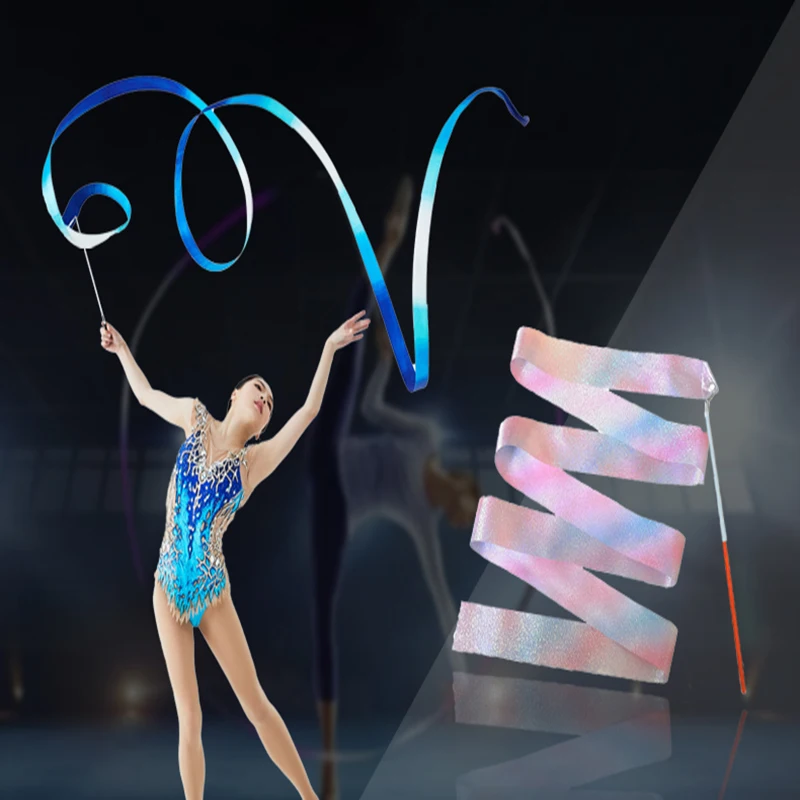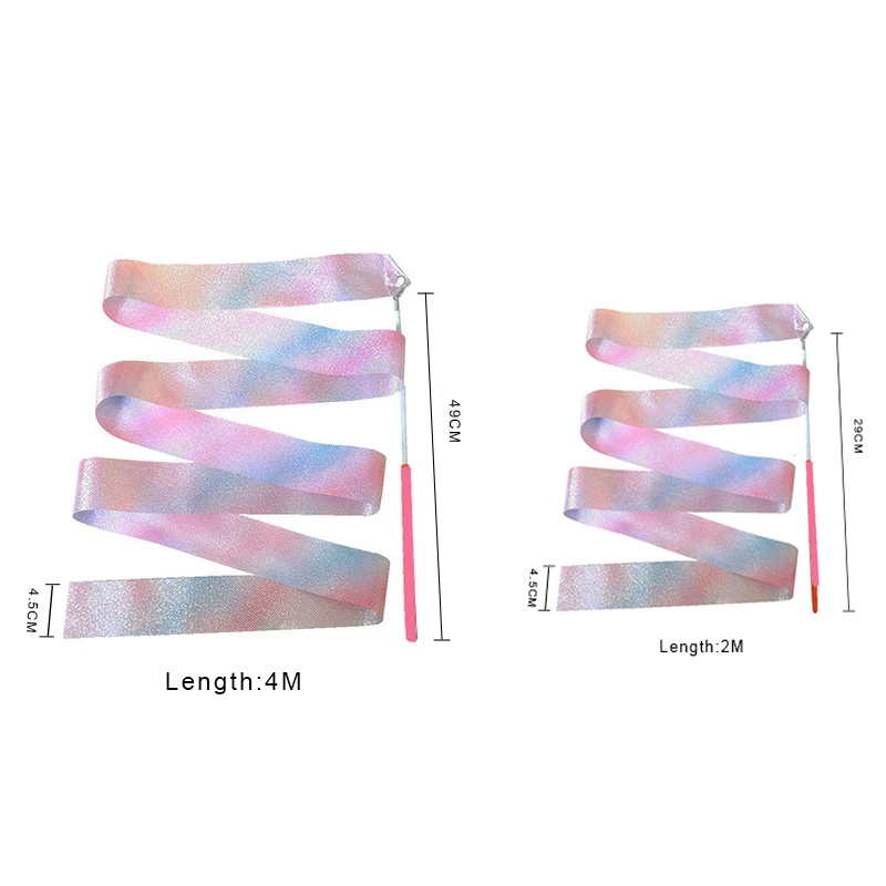 2M/4M Rhythmic Gymnastics Equipment Ballet Streamer Dance Ribbon Rhythmic Twiling Rod Rainbow Stick Training Flashing Star