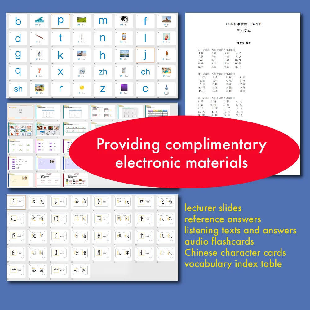 The complete sequence is split into six ranges matching the HSK check, with one quantity for every of Levels 1-3 and two volumes for every of Levels 4-6, totaling 9 volumes. With a textbook, a workbook and a instructor’s e book in every quantity, there are altogether 27 books.