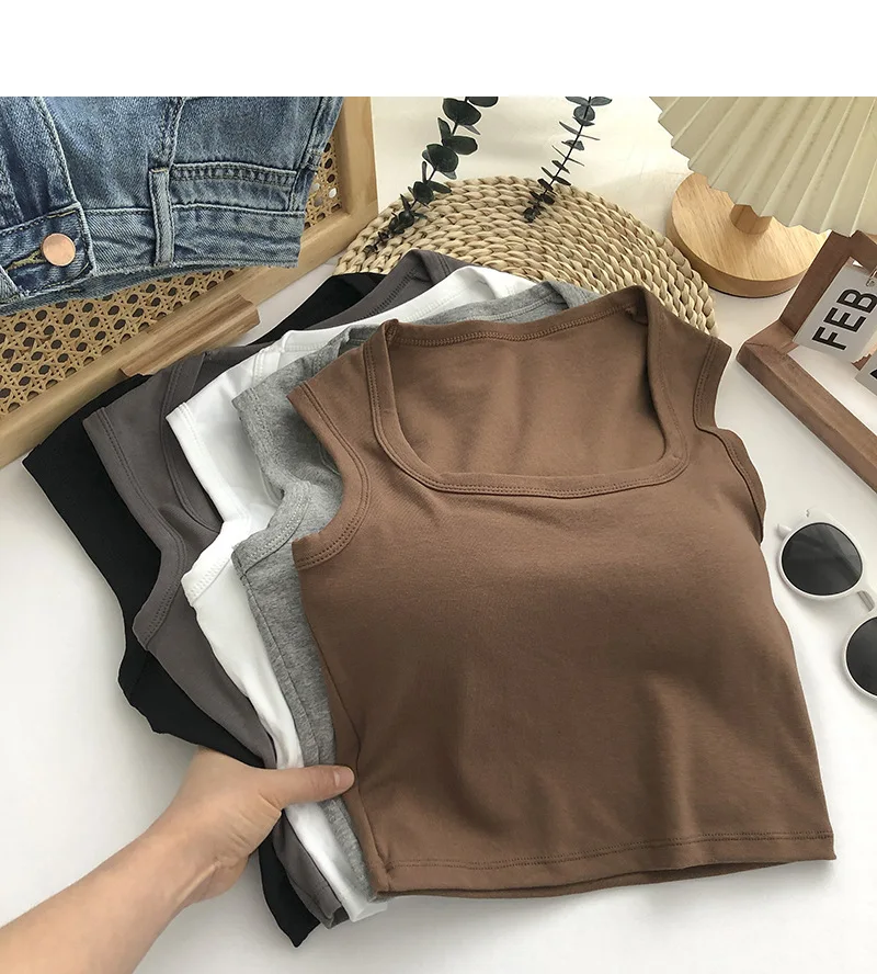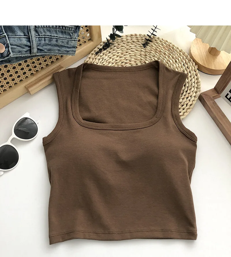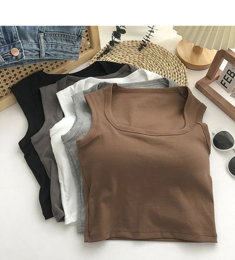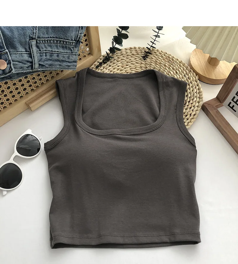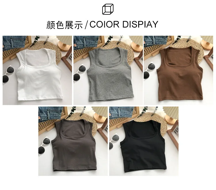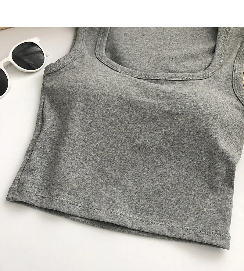 Sexy Square Low-Collar Tank Tops Women Sleeveless Neck Camisole Solid Tank Top Female Summer with Pad Solid Color Bottoming Tops