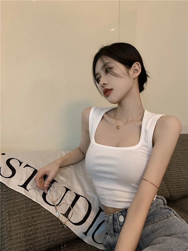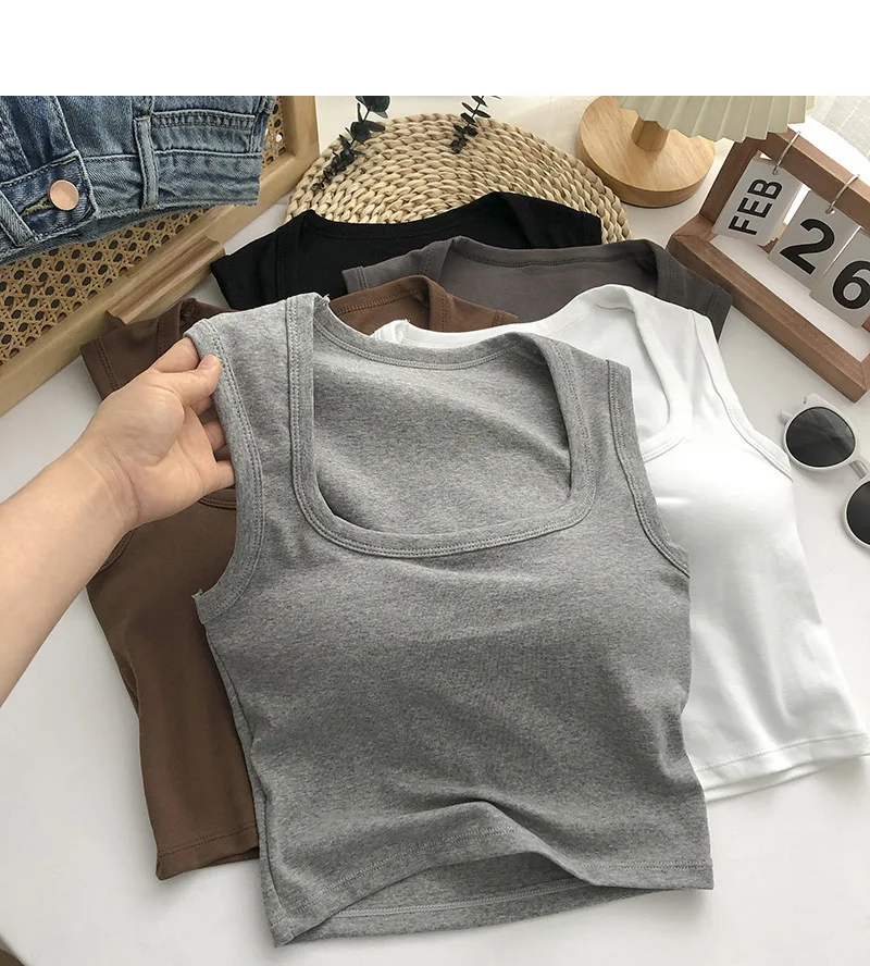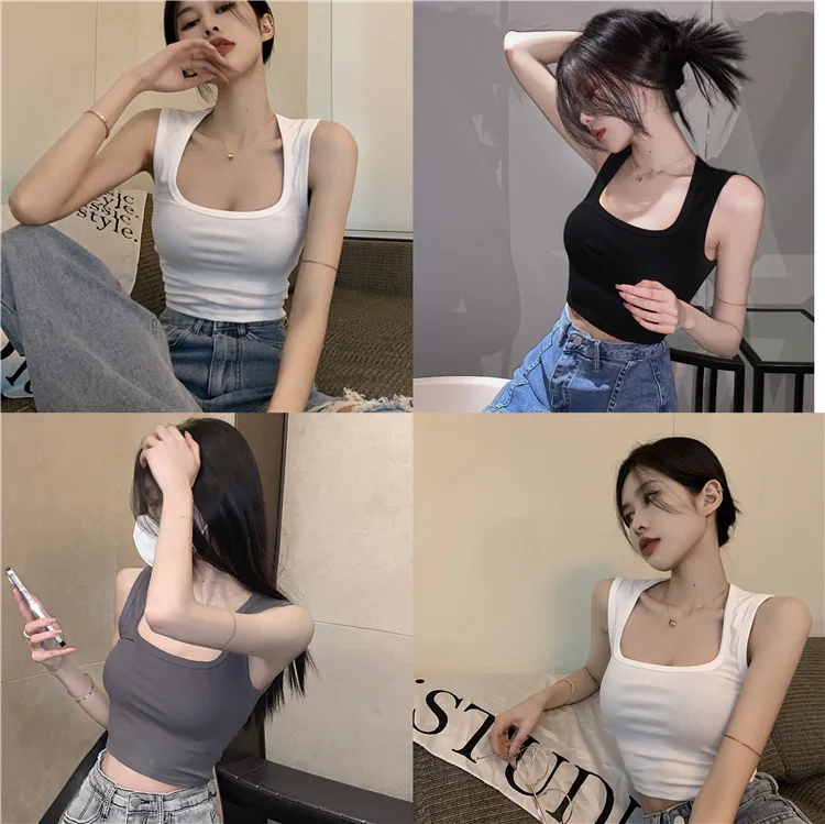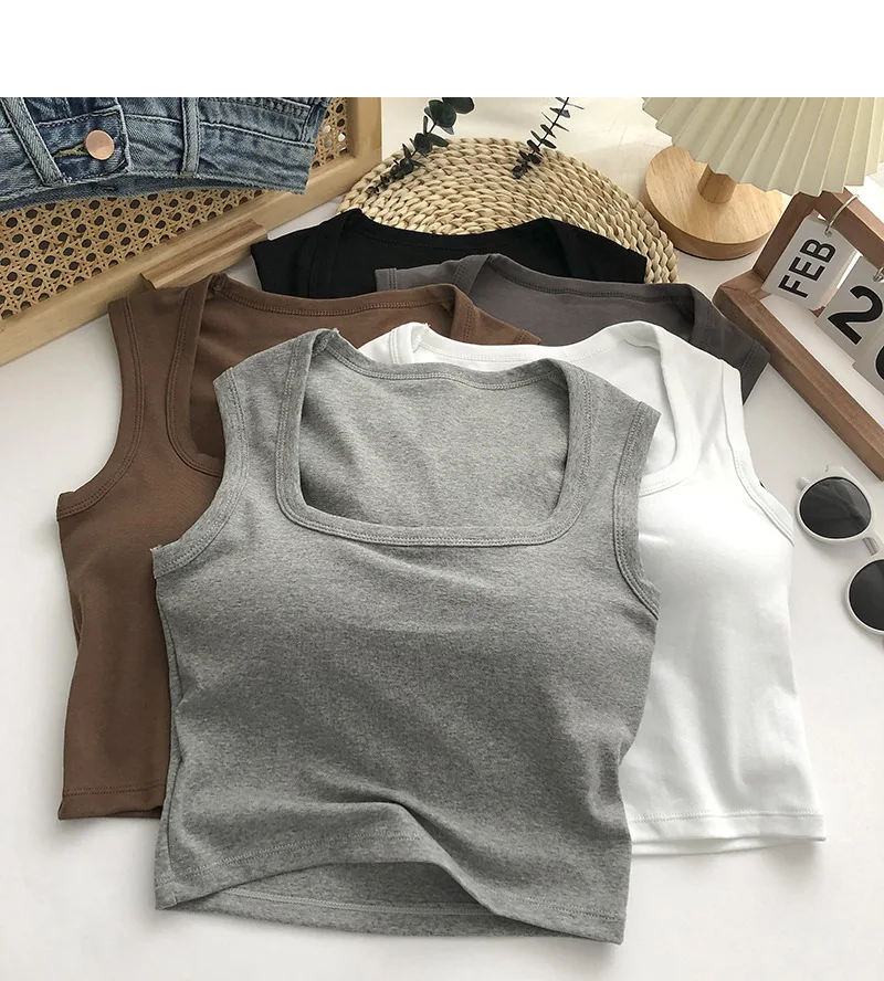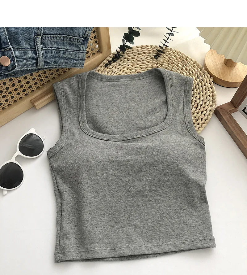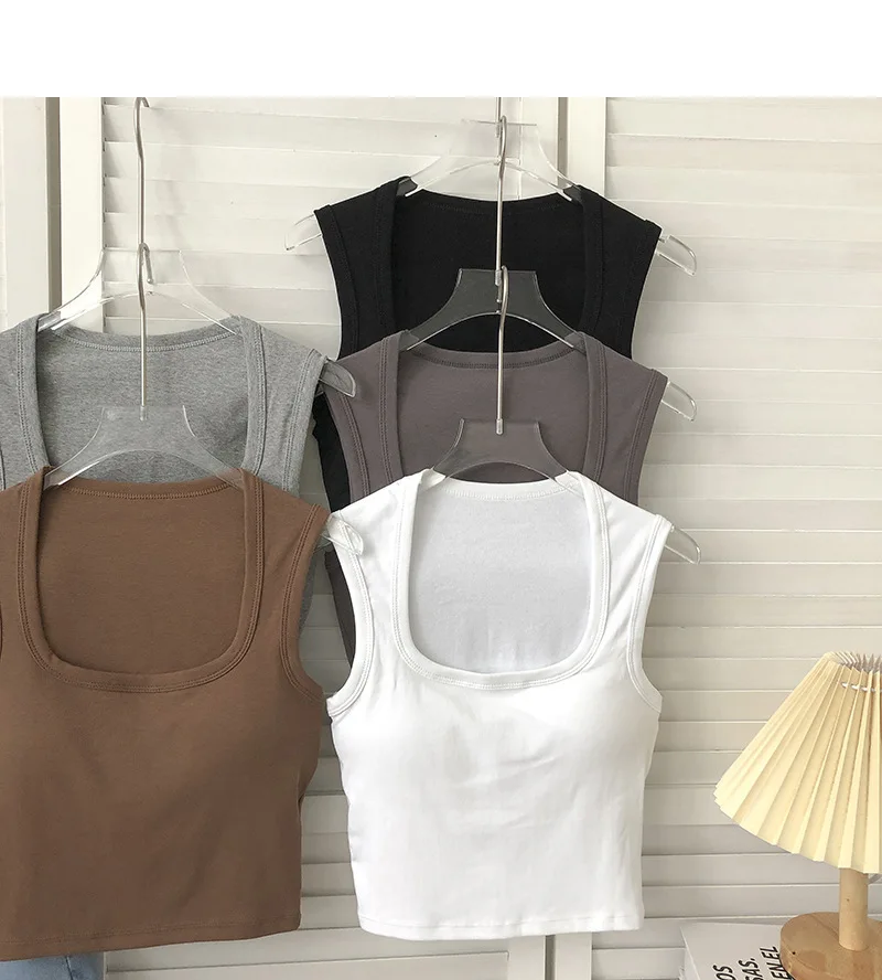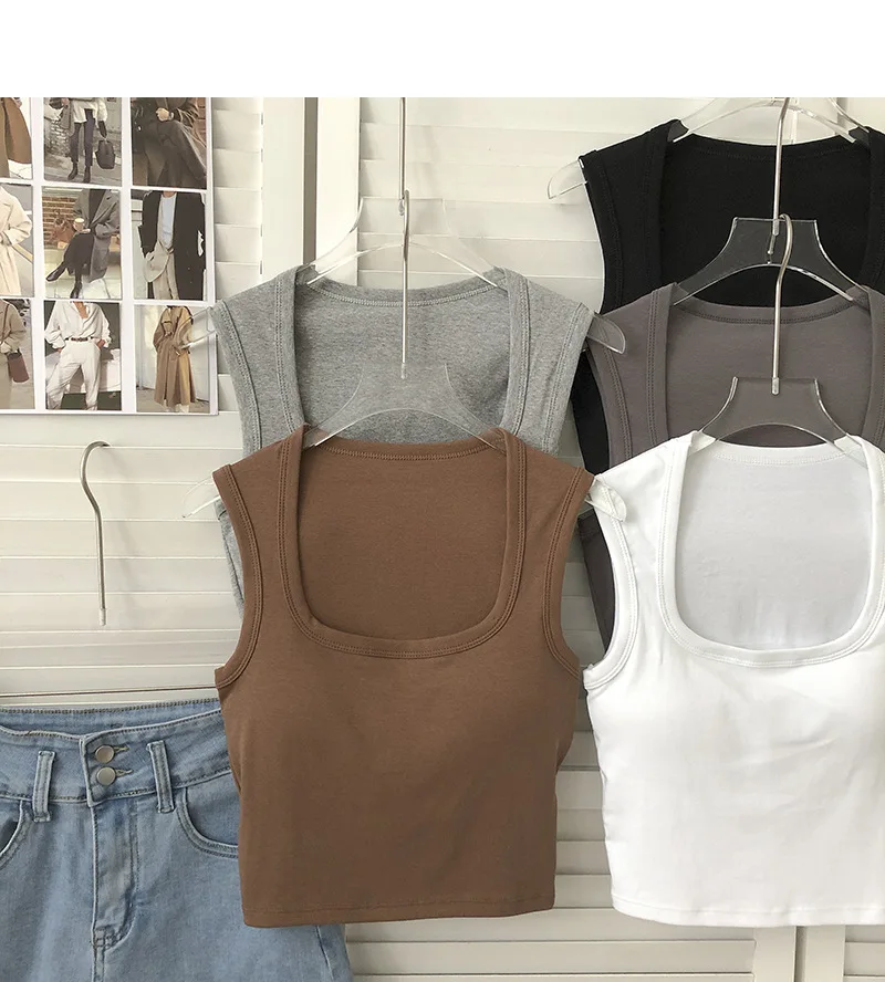 Sexy Square Low-Collar Tank Tops Women Sleeveless Neck Camisole Solid Tank Top Female Summer with Pad Solid Color Bottoming Tops