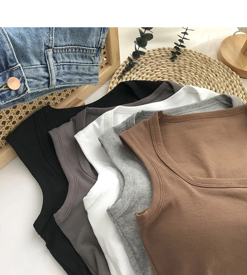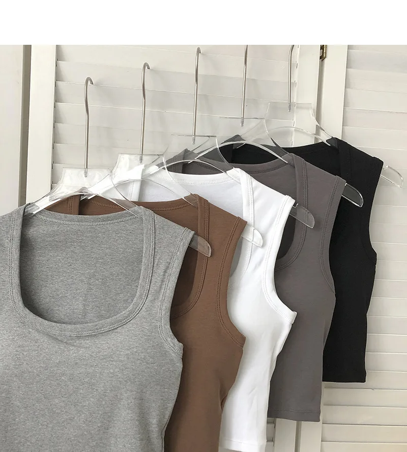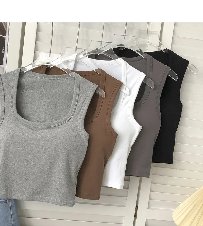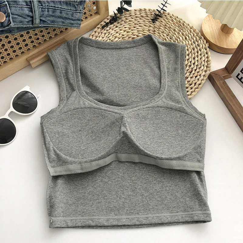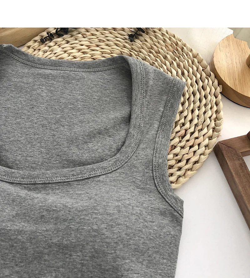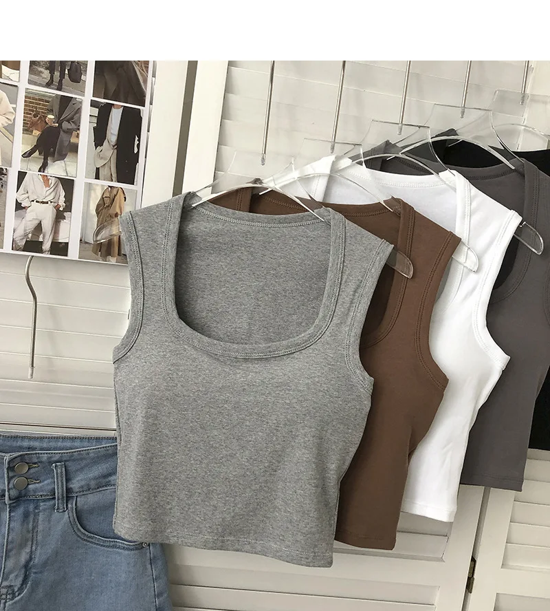 Sexy Square Low-Collar Tank Tops Women Sleeveless Neck Camisole Solid Tank Top Female Summer with Pad Solid Color Bottoming Tops