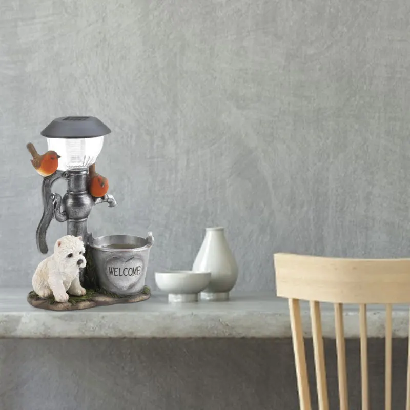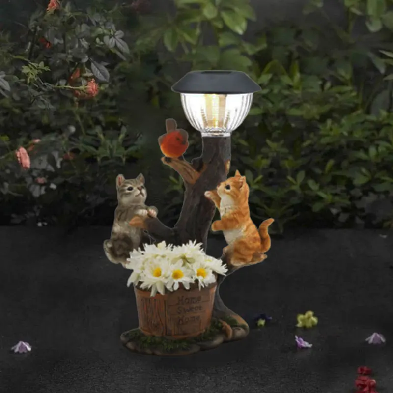 SFunny Resin Little Animal Dog Cat Rabbit Figurines LED Solar Light Craft Statue IP65 Waterproof Garden Home Figurines
