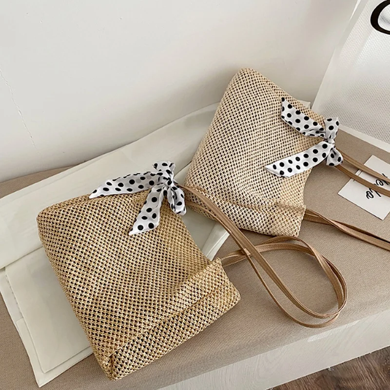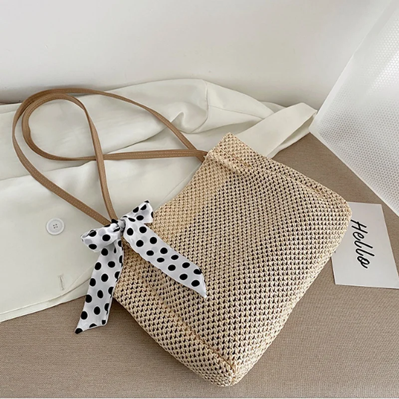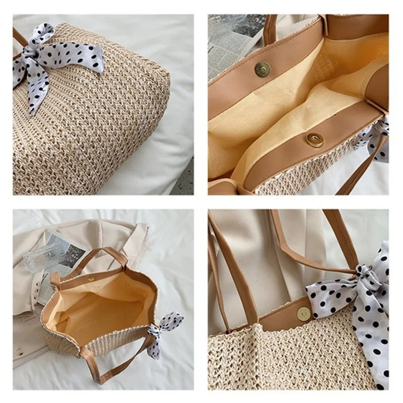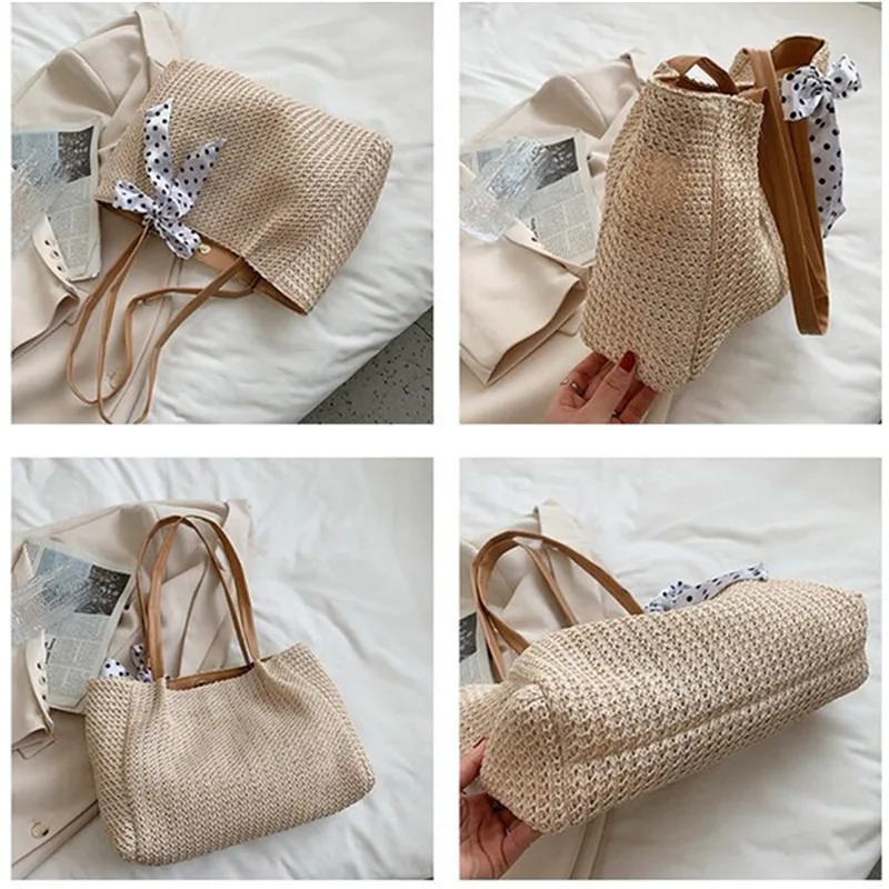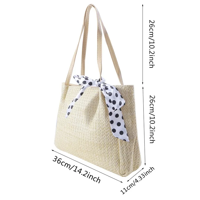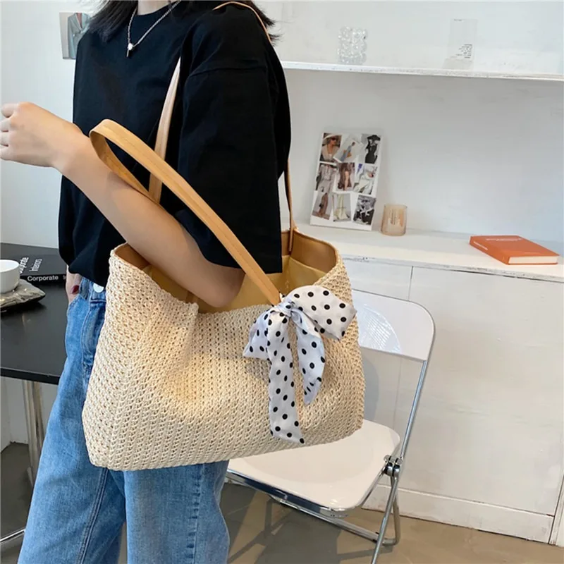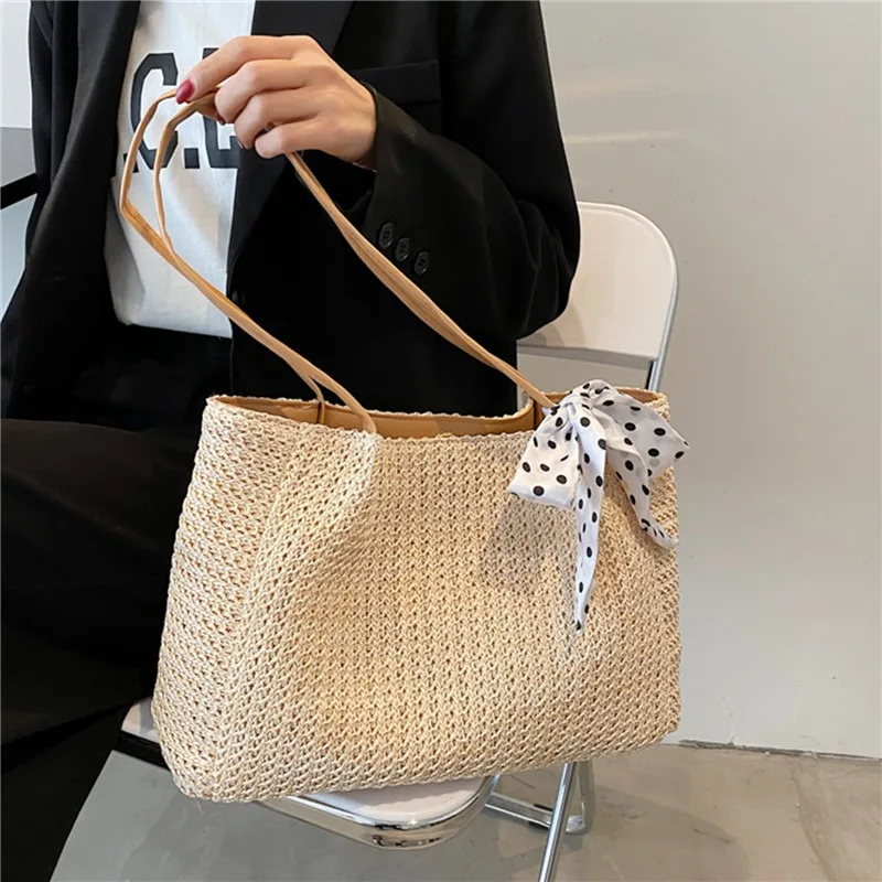 Straw Tote Bag For Women, Handmade Woven Shoulder Bag, Large Capacity Summer Beach Bag