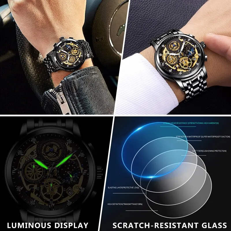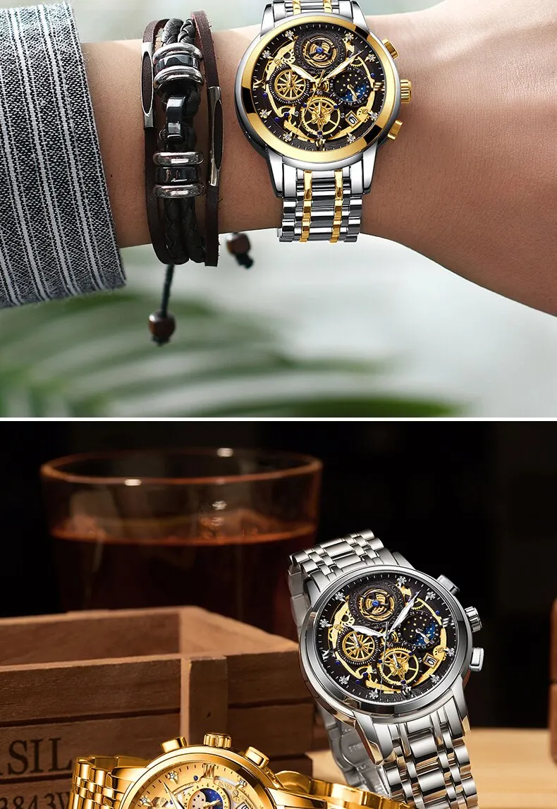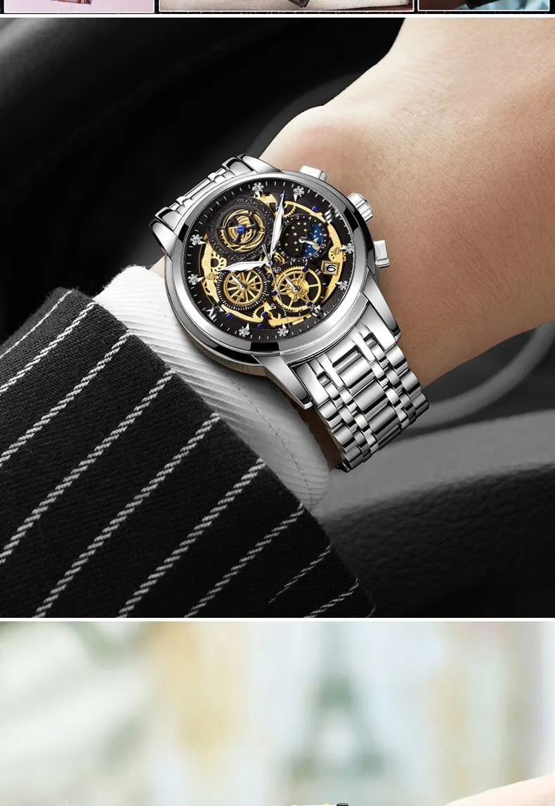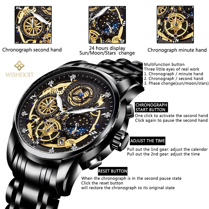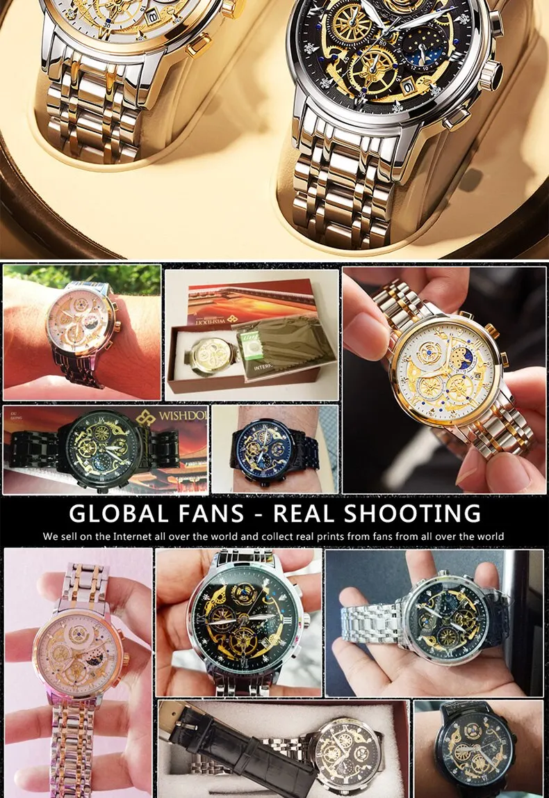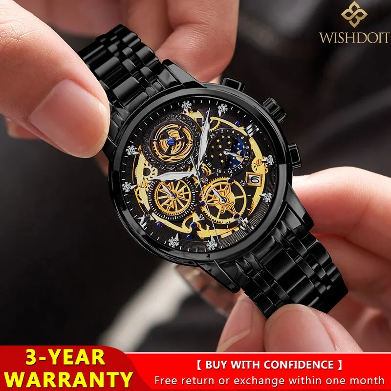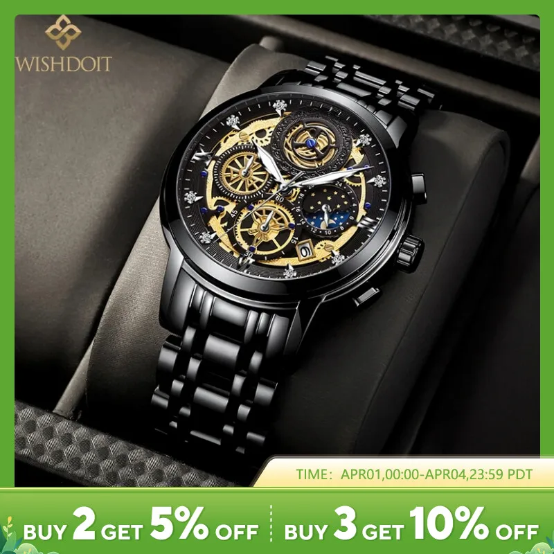 Home Uncategorized WISHDOIT Original Watch for Men’s Waterproof Stainless Steel Quartz Analog Fashion Business Sun Moon Star Wristwatches Top Brand
