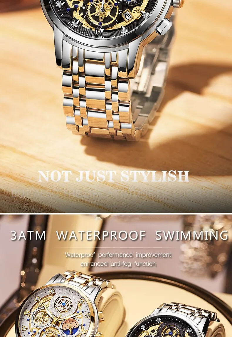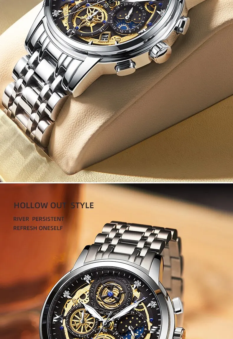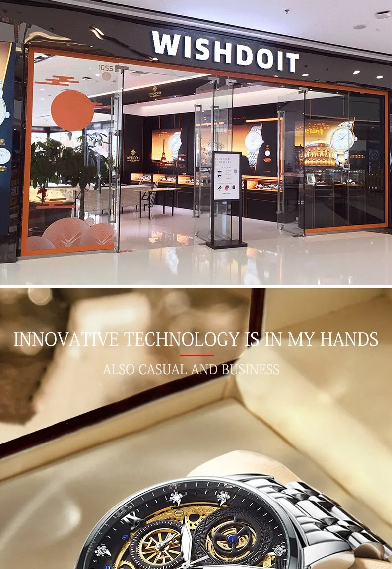 WISHDOIT Original Watch for Men’s Waterproof Stainless Steel Quartz Analog Fashion Business Sun Moon Star Wristwatches Top Brand