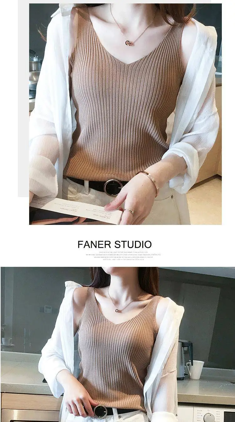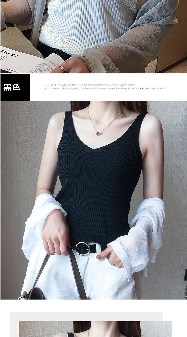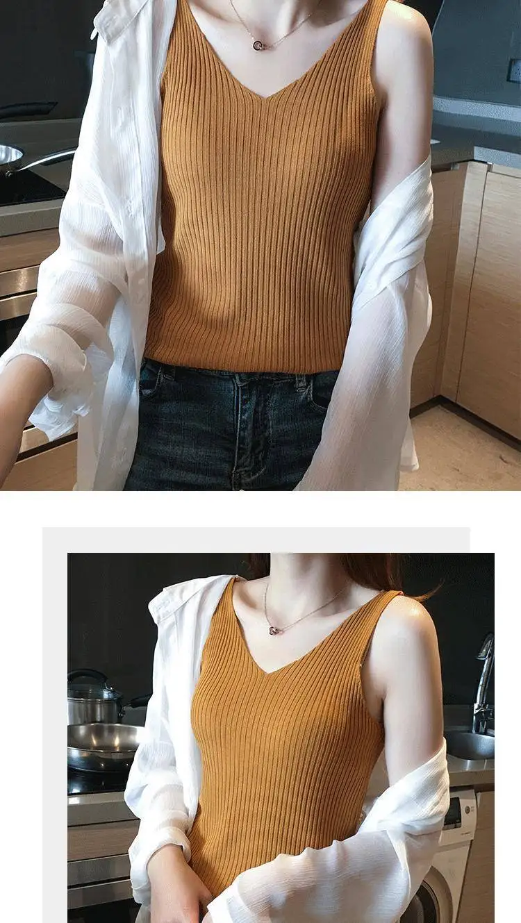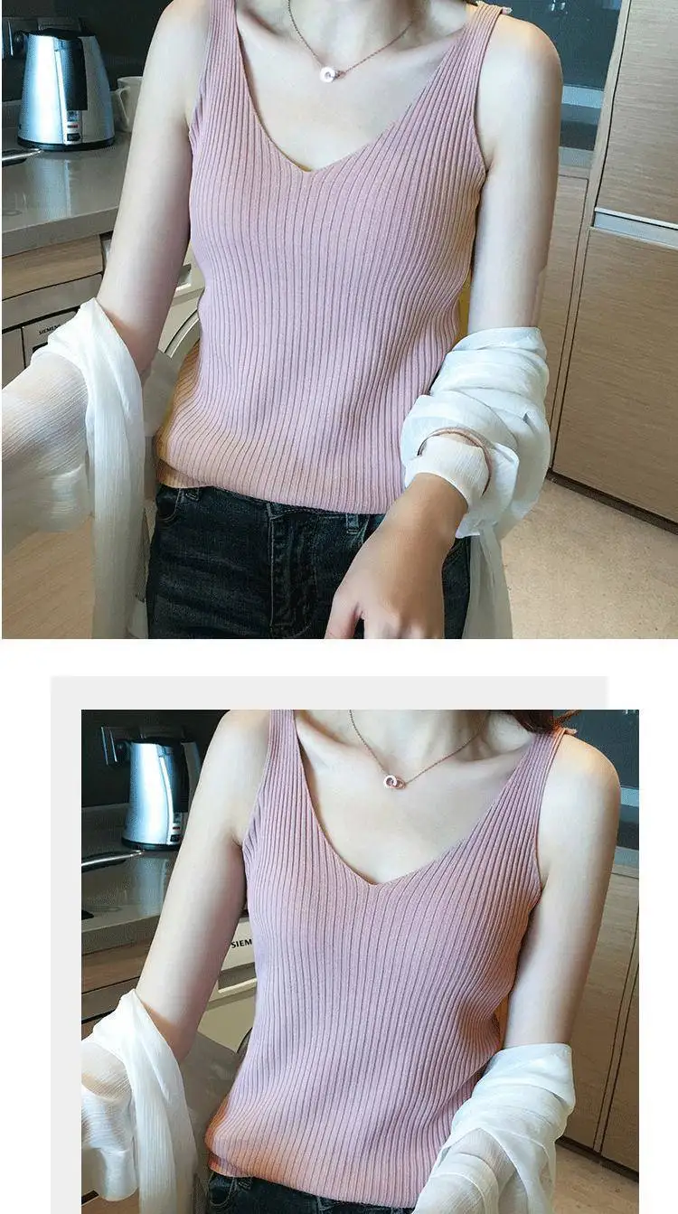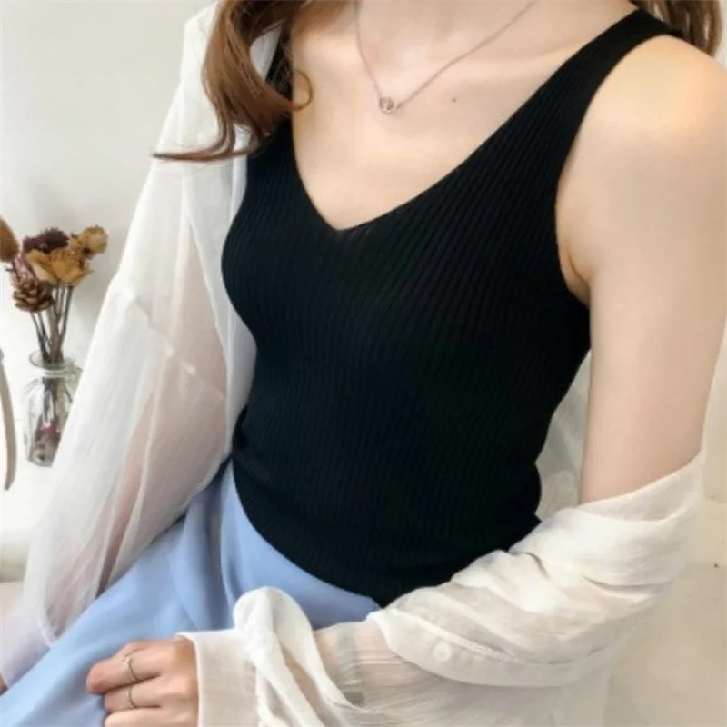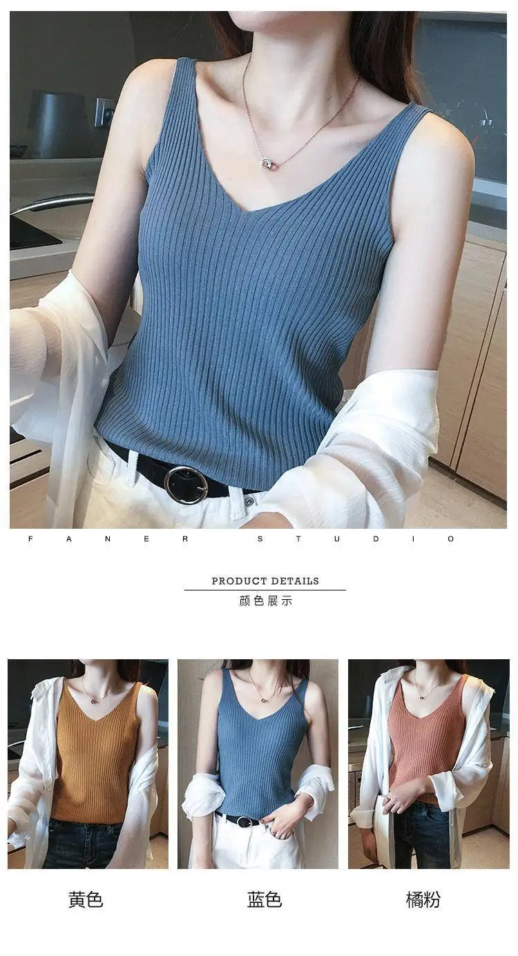 Home Uncategorized Women Summer Tanks Camis Vest Fashion Casual Sleeveless Ladies Street V-Neck Solid Color Tanks Tops Tees Hotsweet B3149