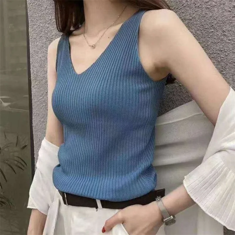 Women Summer Tanks Camis Vest Fashion Casual Sleeveless Ladies Street V-Neck Solid Color Tanks Tops Tees Hotsweet B3149