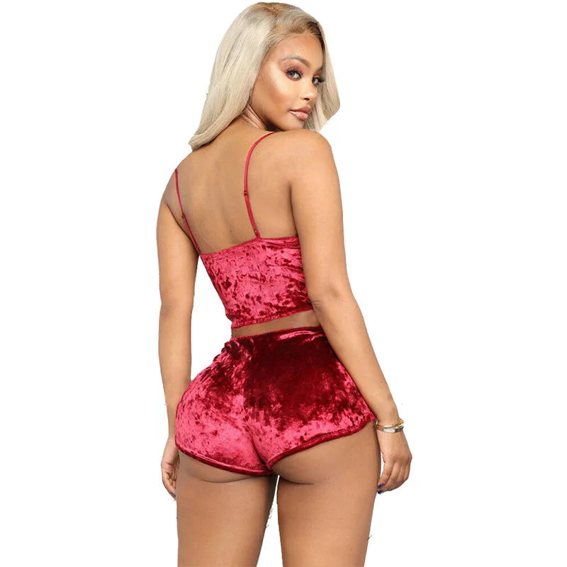 Home Uncategorized Women’s Two-Piece Sexy Velvet V-Neck Erotic Lingerie Set Halter Body Comfortable Pajamas Large Size Homewear Clothing 2024 New