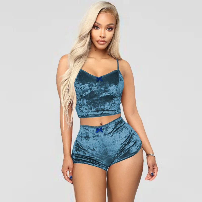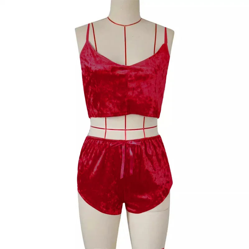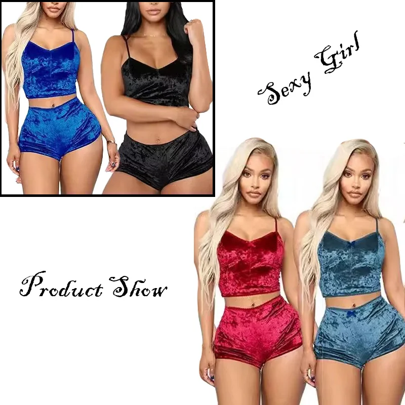 Women’s Two-Piece Sexy Velvet V-Neck Erotic Lingerie Set Halter Body Comfortable Pajamas Large Size Homewear Clothing 2024 New