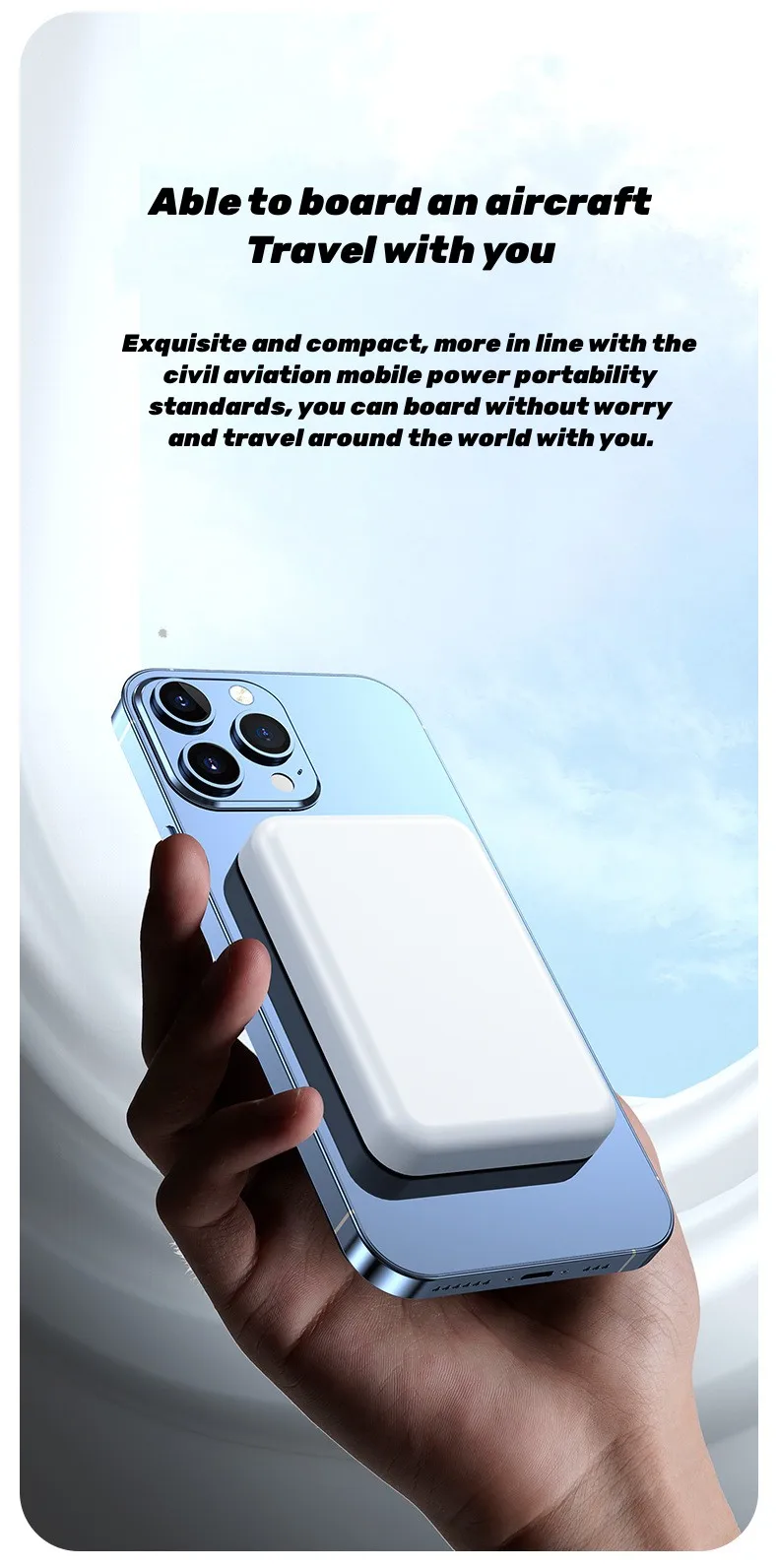 Product Model: for iPhone 12 13 14 15/Pro/Max/Mini/Plus macsafe powerbank magnetic wi-fi energy financial institution moveable exterior auxiliary battery pack