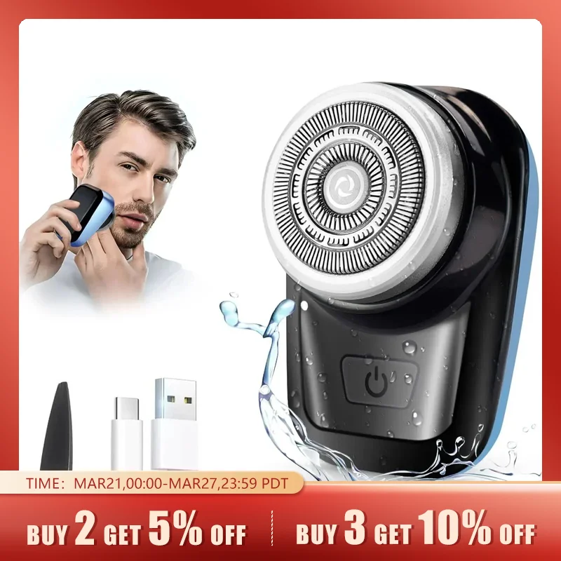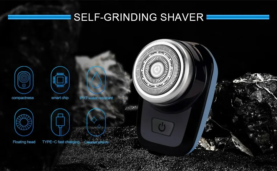 Mini Electric Shaver Self Sharpening Shaver Portable Shaver Beard Trimmer Rechargeable Razor for Men 7900 Rpm lPX7 Waterproof