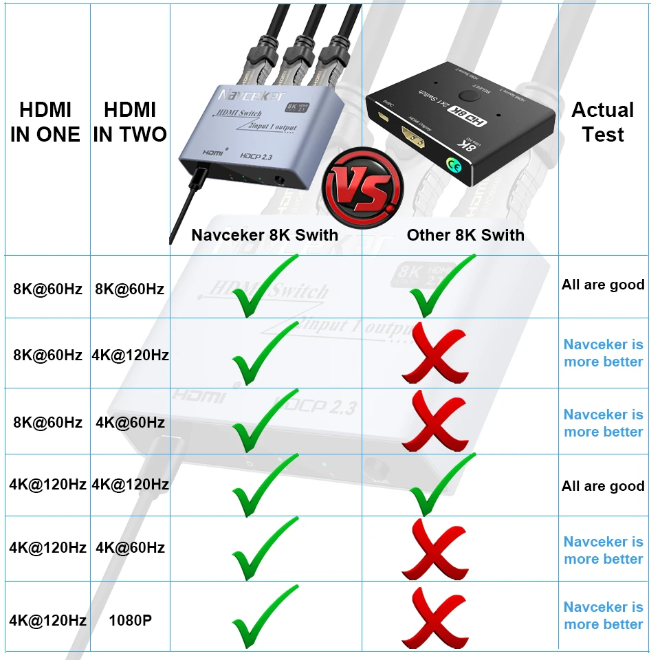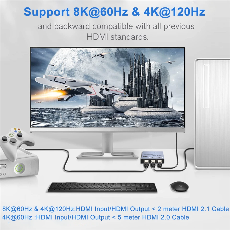 2: If you should use Navceker switcher to output 4K@120Hz and 8K@60Hz, please ensure that your HDMI-compatible cable, HDMI-compatible sign supply and HDMI-compatible show all assist the above decision.